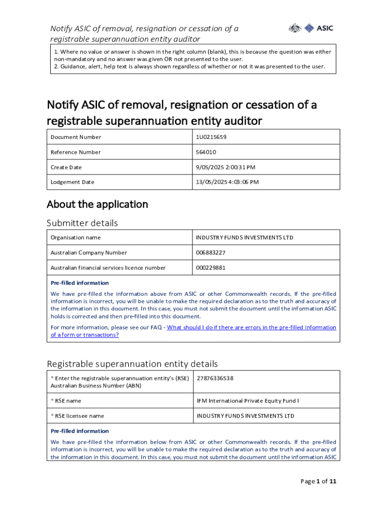 Get the free Notification of resignation, removal or cessation of auditor