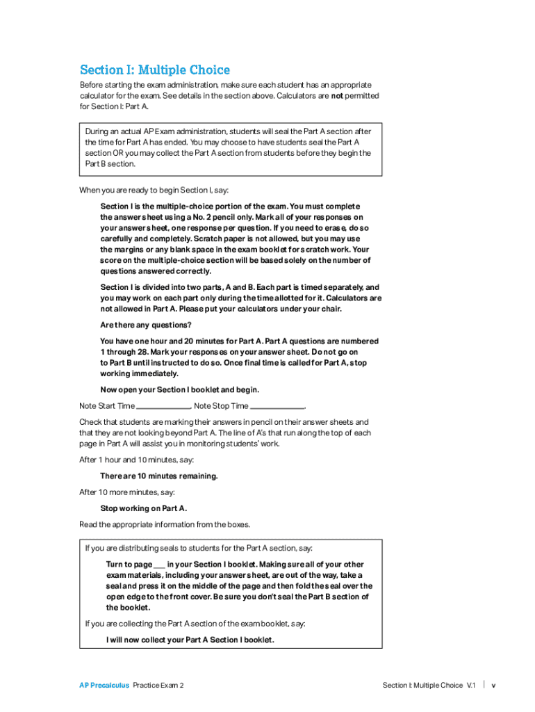 How to fill out ap precalculus practice exam?