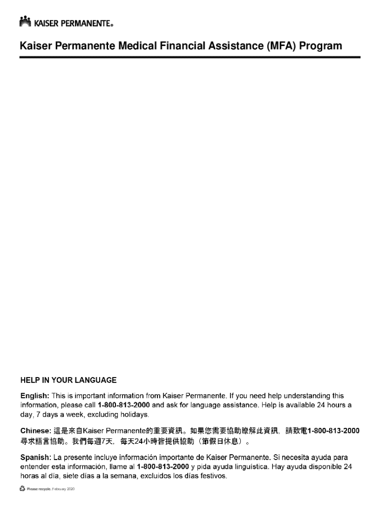 Get the free Kaiser Permanente Medical Financial Assistance (mfa) Program