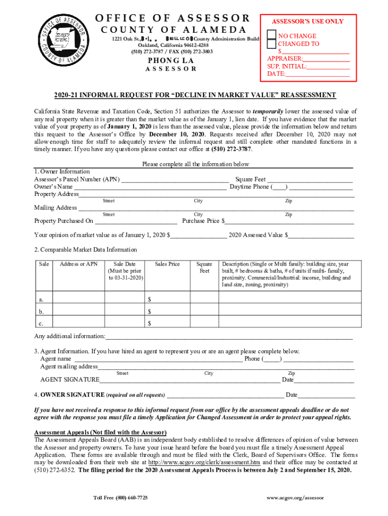 Get the free 2020-21 Informal Request for “decline in Market Value” Reassessment