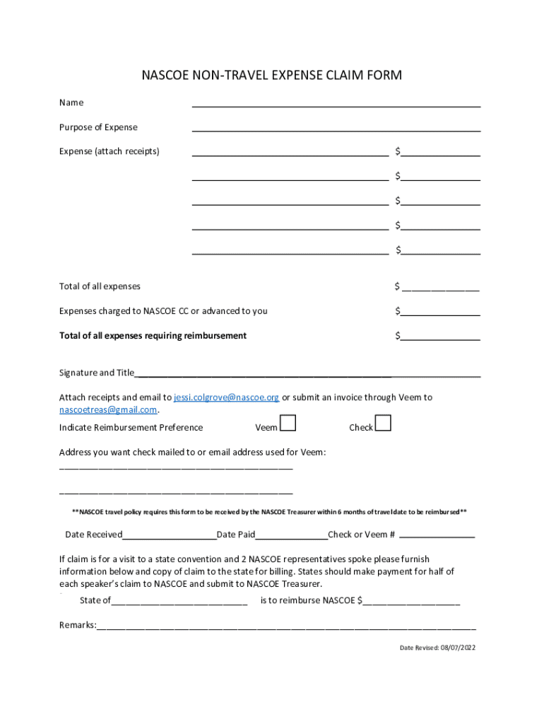 NASCOE Non-Travel Expense Claim Form: A Comprehensive How-to Guide