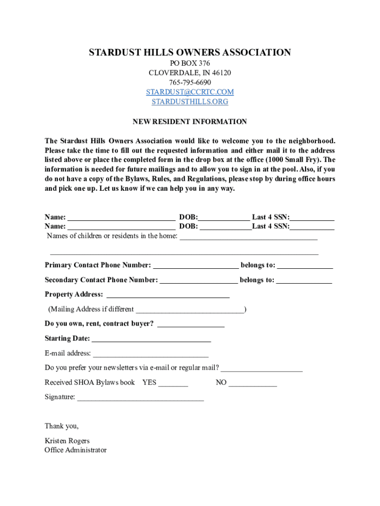 Get the free New Resident Information