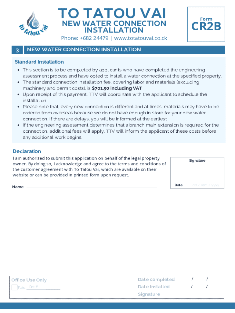 The new water connection form is a crucial document necessary for establishing a water supply at your property. Whether you're a homeowner wishing to settle into a new neighborhood or a business looking to set up operations, completing this form correctly is the first step toward reliable water access.