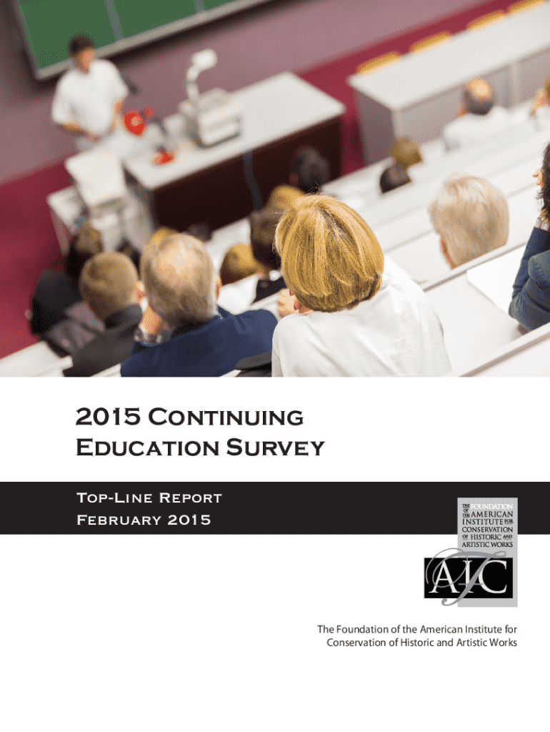This report presents the findings from the 2014 FAIC Education Survey, which assessed the educational needs of conservation professionals in the United States, focusing on topics, methods, and funding