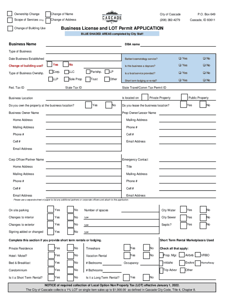 Get the free Business License and Lot Permit Application
