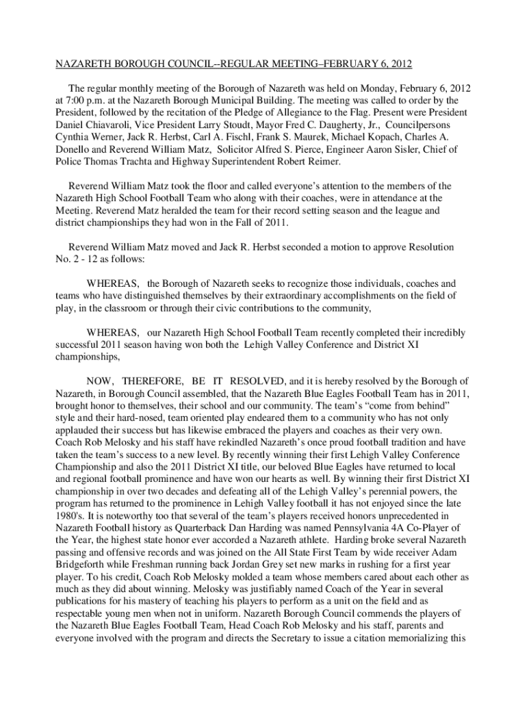 Get the free Nazareth Borough Council Regular Meeting Minutes