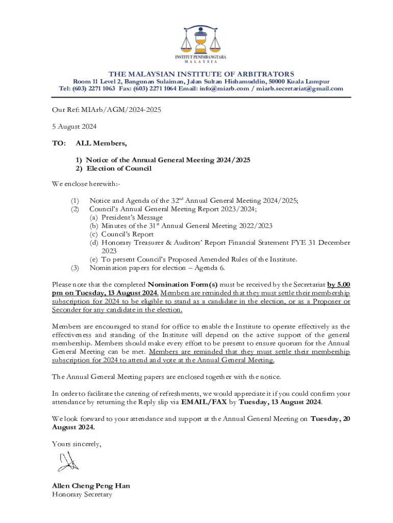 Get the free Notice of the Annual General Meeting and Form of Proxy