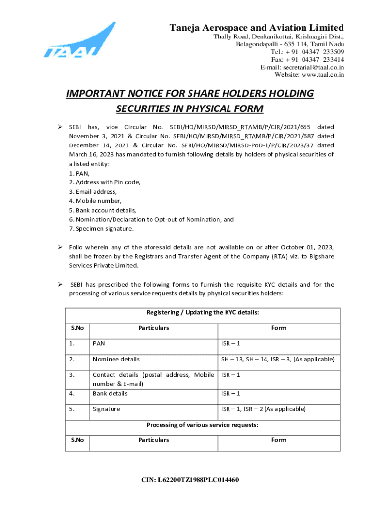 Get the free TANEJA AEROSPACE AND AVIATION LIMITED - taal co
