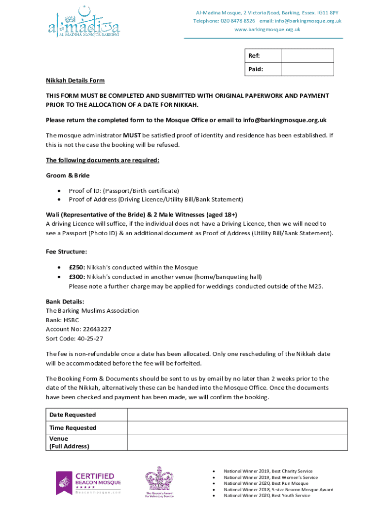 Get the free Nikkah Details Form