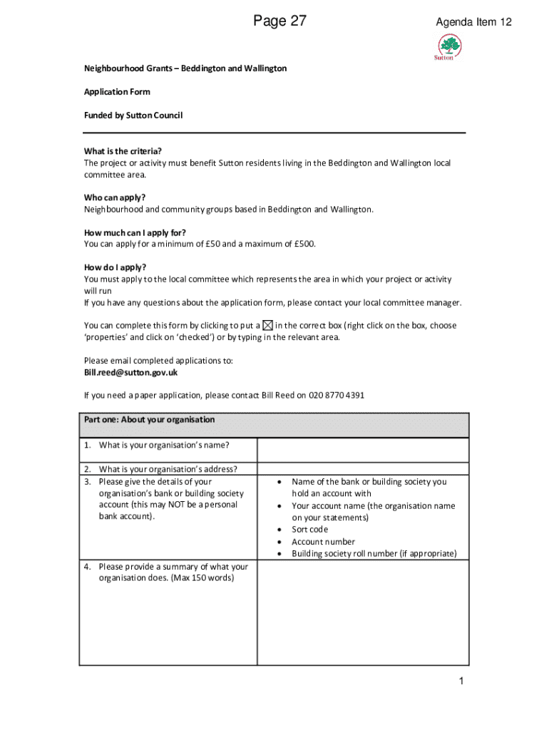 Get the free Neighbourhood Grants – Beddington and Wallington Application Form - moderngov sutton...
