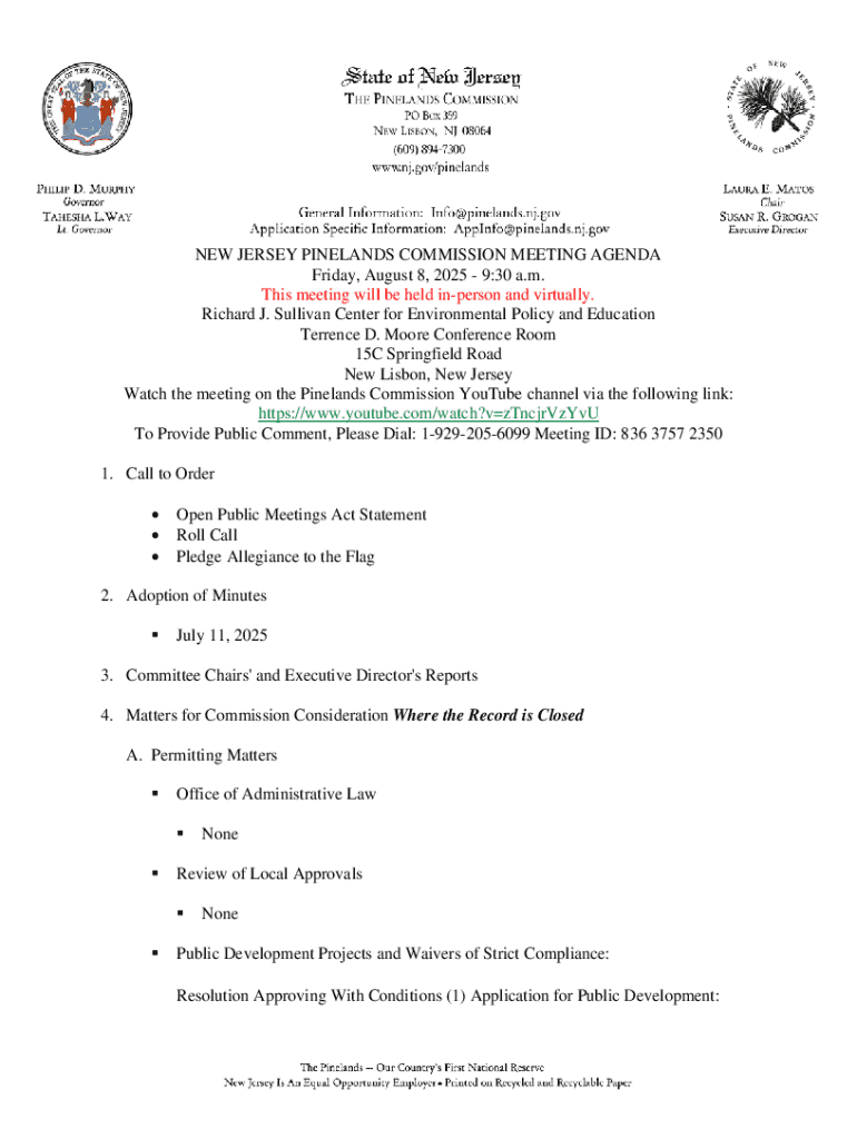 Get the free New Jersey Pinelands Commission Meeting Agenda