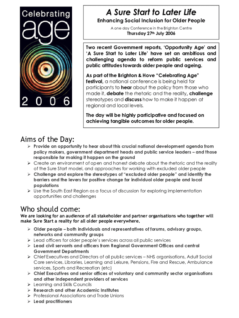 Get the free a Sure Start to Later Life