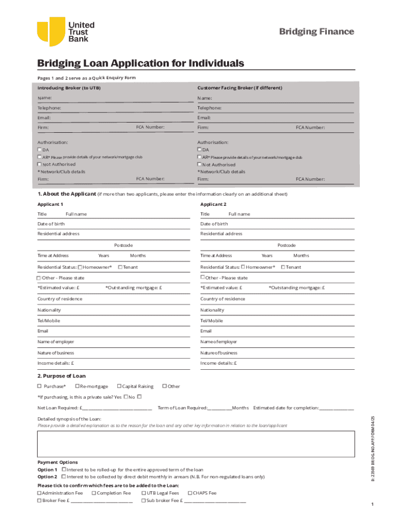 Completing a bridging loan application form is the first step in securing a bridging loan. The application process typically involves submitting detailed information to lenders, which allows them to assess your financial situation and the property involved. A well-structured application can significantly enhance the chances of approval.