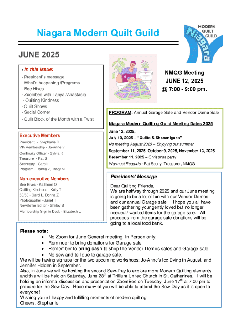 The NMQG Membership Form is a crucial document for anyone looking to join the National Modern Quilt Guild (NMQG). This form allows individuals to officially register for membership, granting them access to a broader quilting community that values modern techniques and creativity. The NMQG serves as a vital resource for quilters, offering educational opportunities, networking, and exposure to quilting trends.
