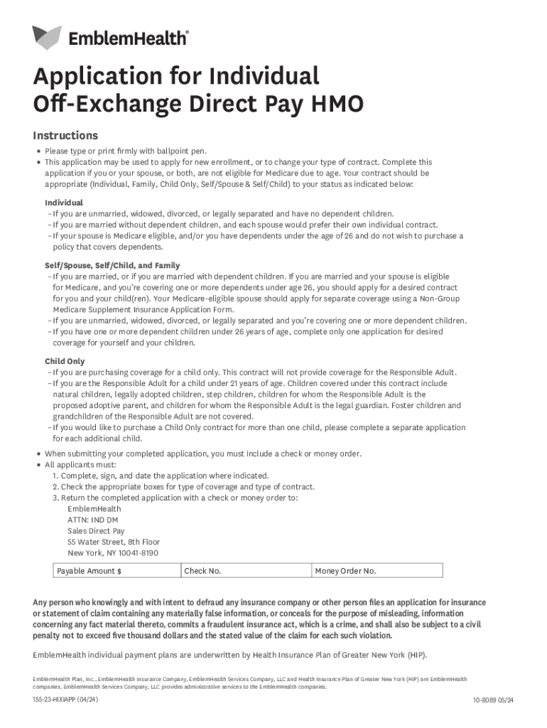 Get the free Application for Individual Off-exchange Direct Pay Hmo