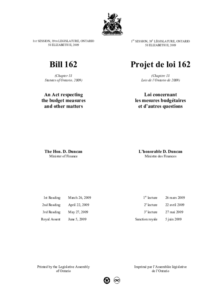 Obtenir le gratuit Budget Measures Act, 2009, S.O. 2009, c. 18 - Bill 162"