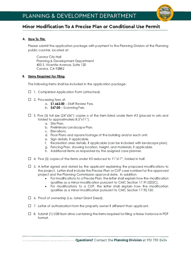 Get the free Minor Modification to a Precise Plan or Conditional Use Permit