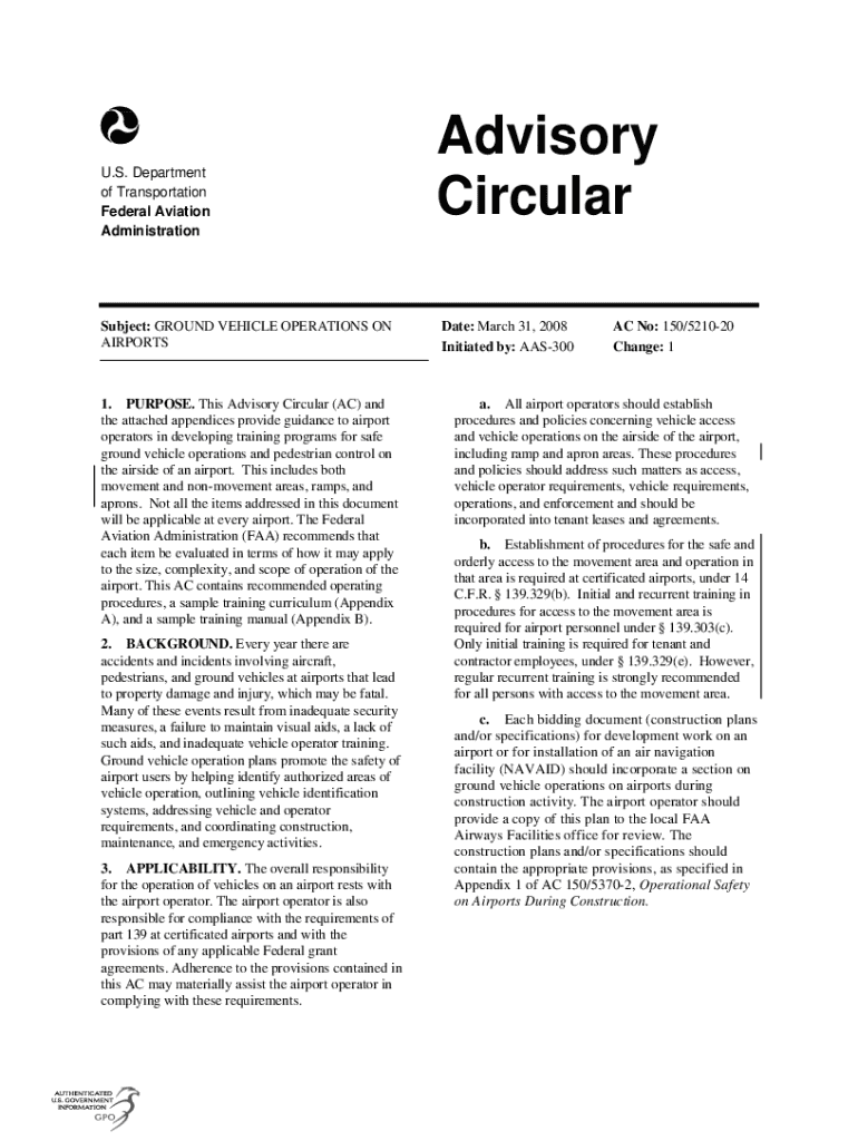 Get the free Ac 150/5210-20 Change 1
