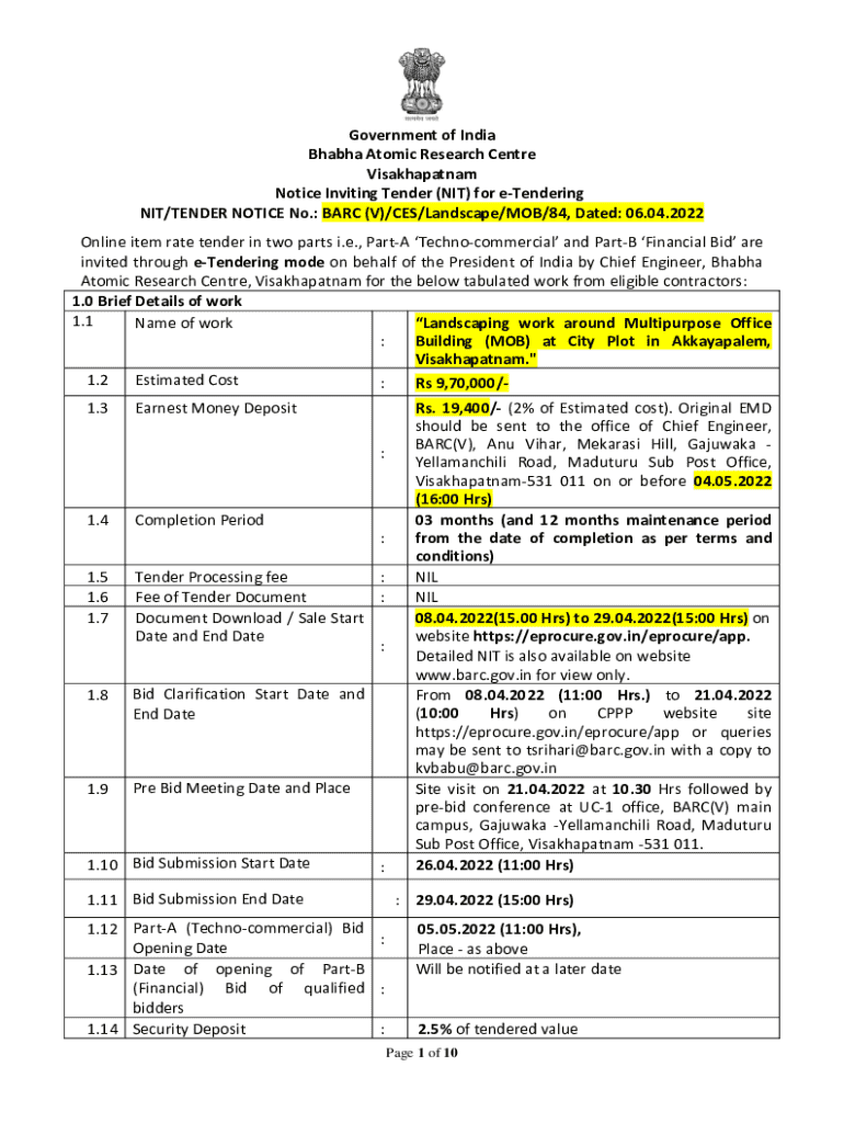 Notice Inviting Tender (NIT) Form: A Comprehensive How-to Guide
