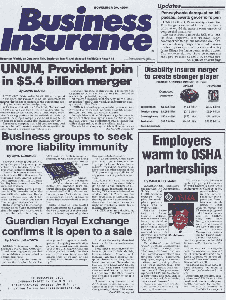 Get the free Business Insurance, November 30, 1998