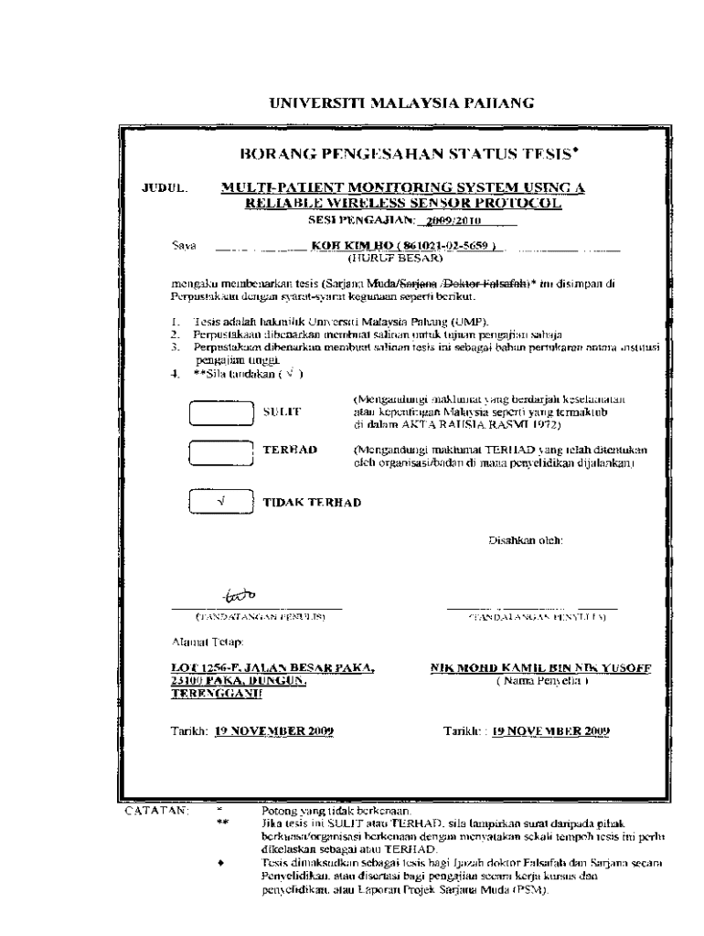 Get the free Borang Pengesahan Status Tesis - umpir ump edu
