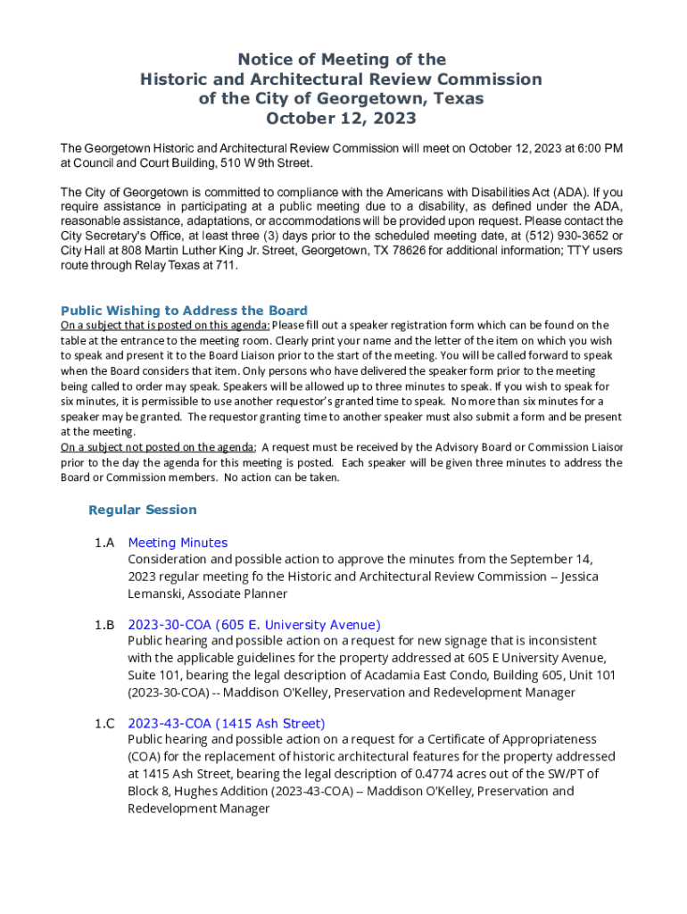 Get the free Notice of Meeting of the Historic and Architectural Review Commission