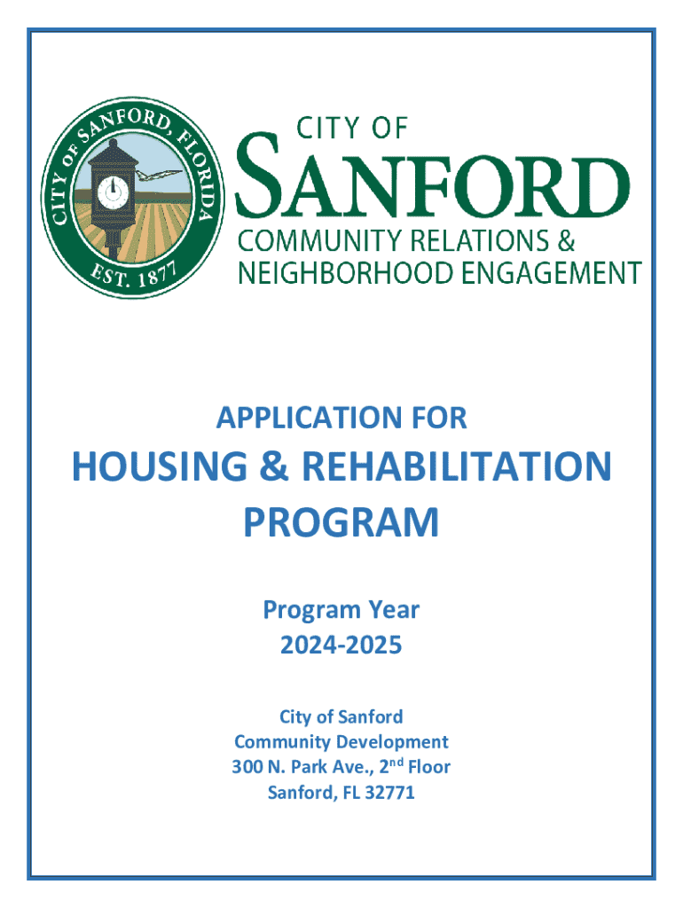This document serves as an application for the Housing & Rehabilitation Program for the City of Sanford for the program year 20242025. It includes instructions for completing the application, required
