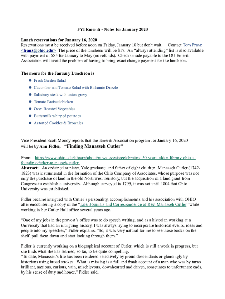 Get the free Fyi Emeriti - Notes for January 2020