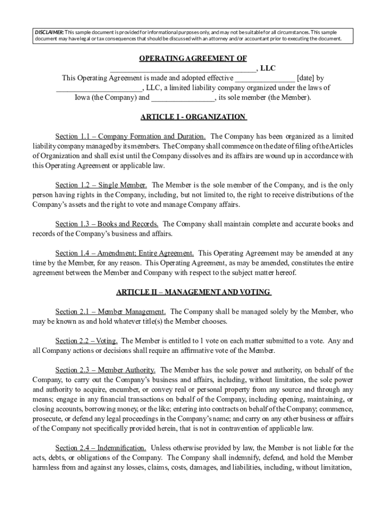 Step-by-step guide to drafting an Iowa single-member operating agreement
