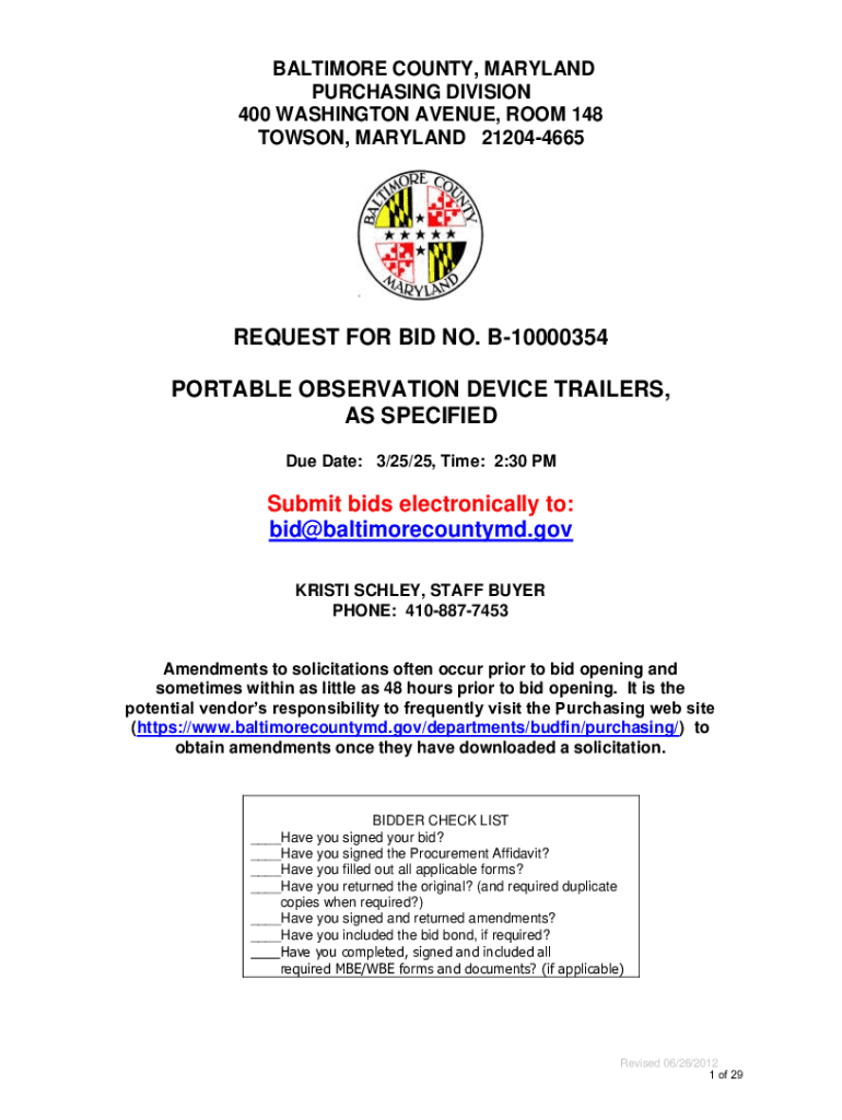 Get the free Baltimore County, Maryland Request for Bid No. B-10000354