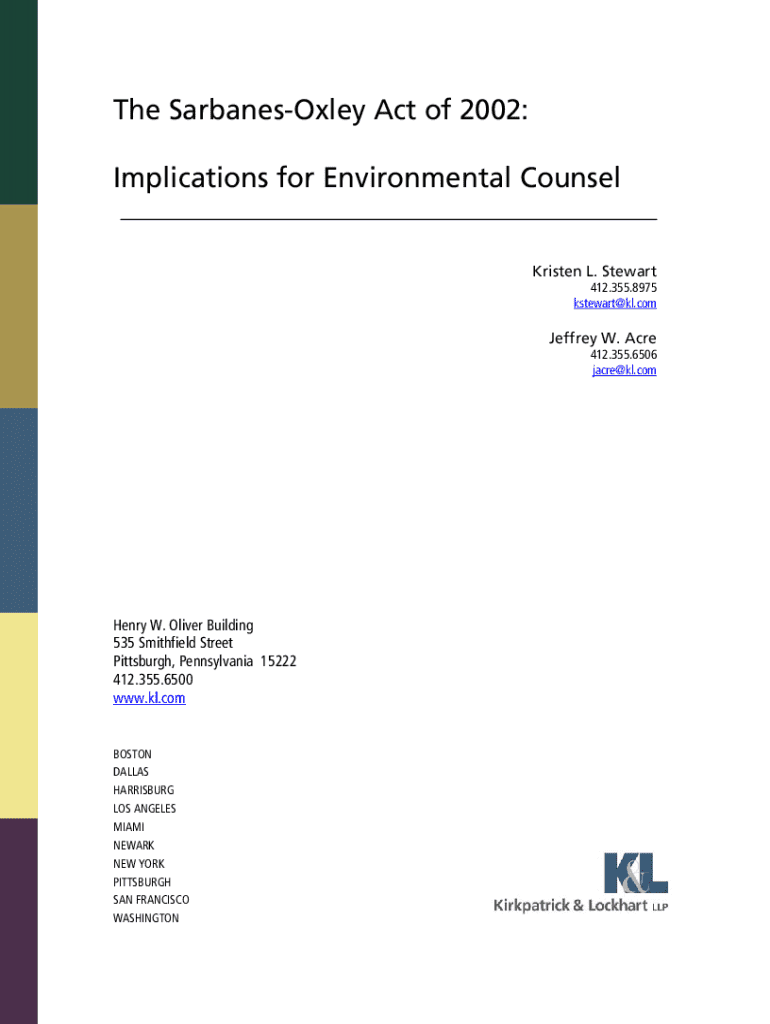 Get the free Sarbanes-oxley Act of 2002 Implications for Environmental Counsel