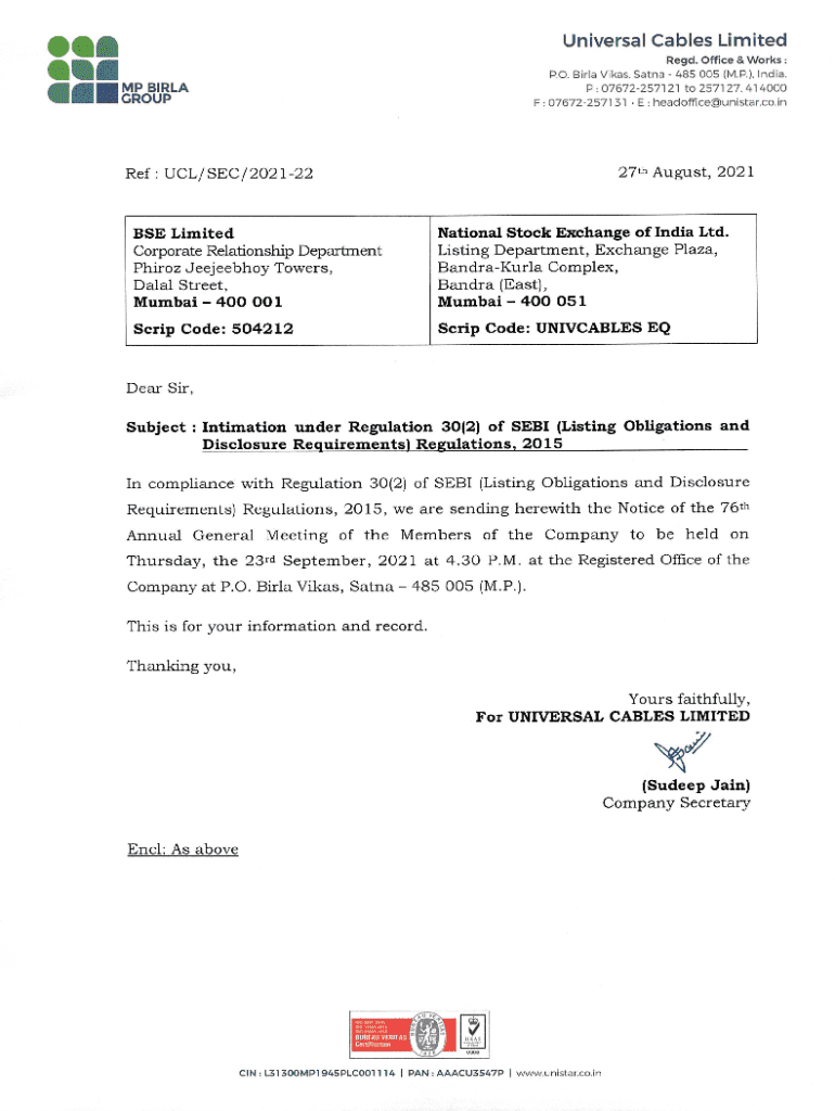 Get the free Notice of Seventy Sixth Annual General Meeting - unistar co