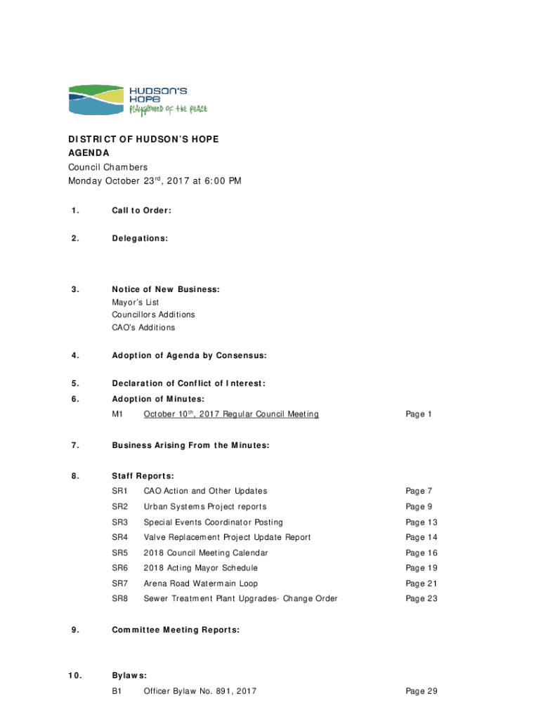 Get the free District of Hudson’s Hope Council Meeting Agenda