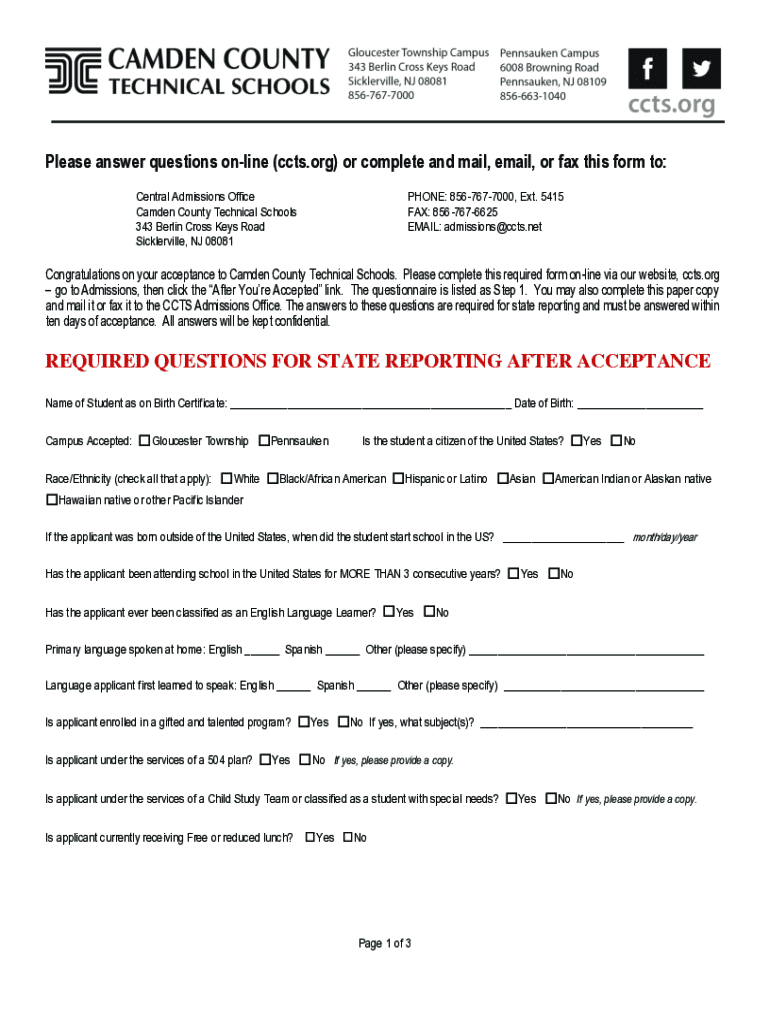 Get the free New Jersey state-required questions for accepted applicants