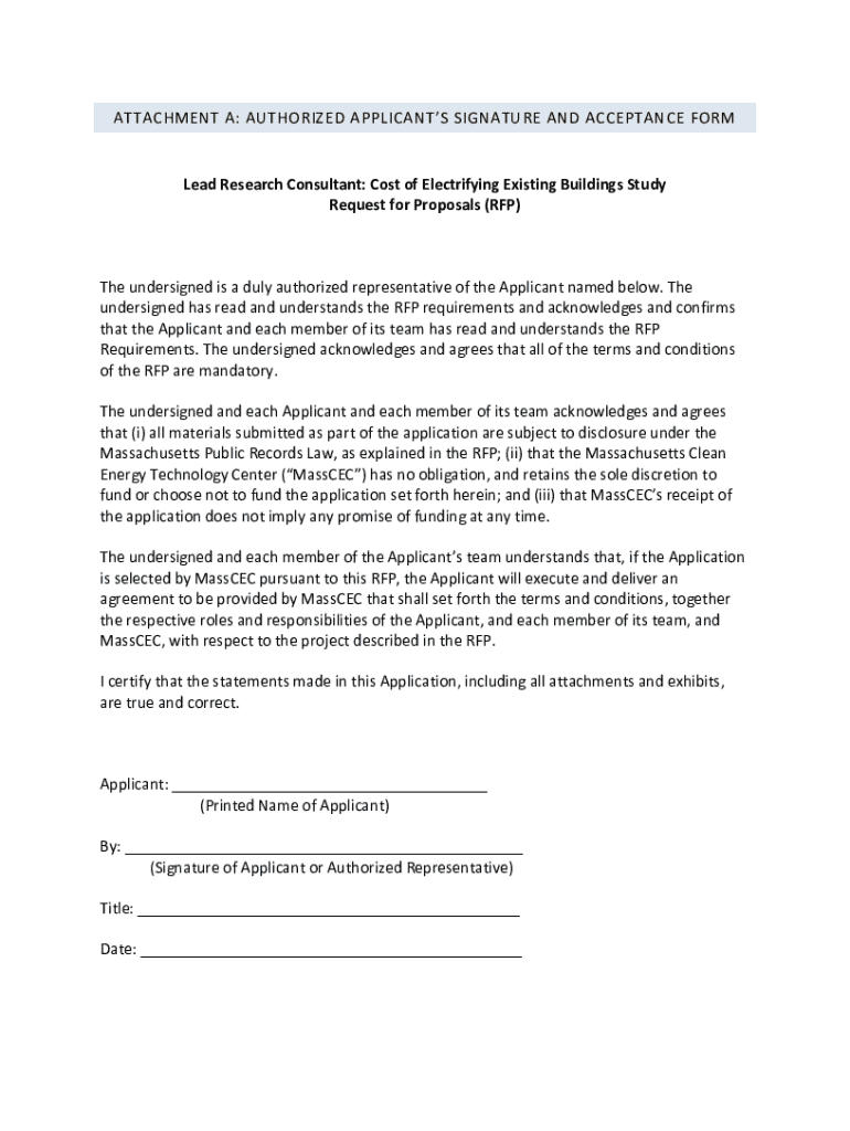 Get the free Attachment a: Authorized Applicant’s Signature and Acceptance Form