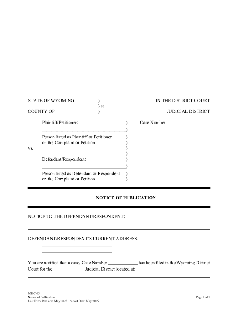 This document serves as a legal notice to the defendant/respondent about a case filed in the Wyoming District Court, outlining the nature of the case and the plaintiff\'s requests.