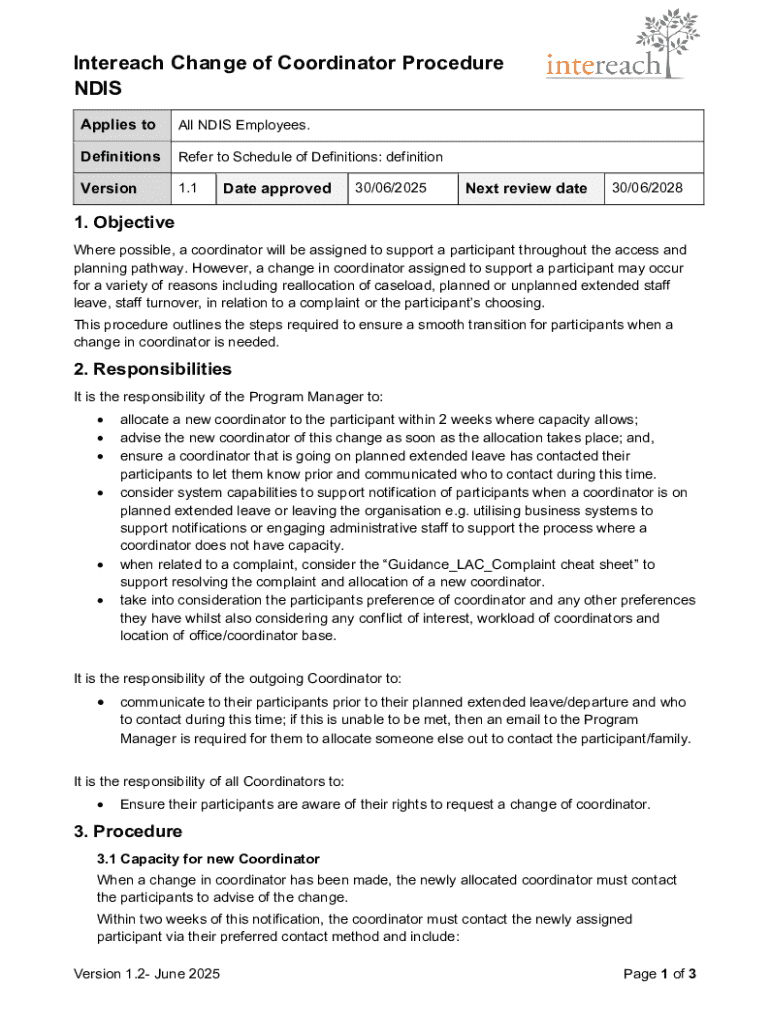 Get the free Intereach Change of Coordinator Procedure