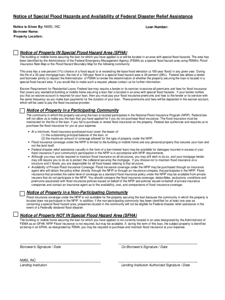 Get the free Notice of Special Flood Hazards and Availability of Federal Disaster Relief Assistance