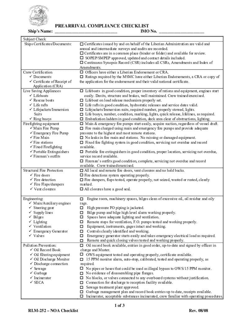 Additionally, specific regulations governing the form are rooted in maritime laws that emphasize safety and environmental protection. These laws dictate the requirements for documentation and inspection, ensuring that all marine operations are accountable and safe.