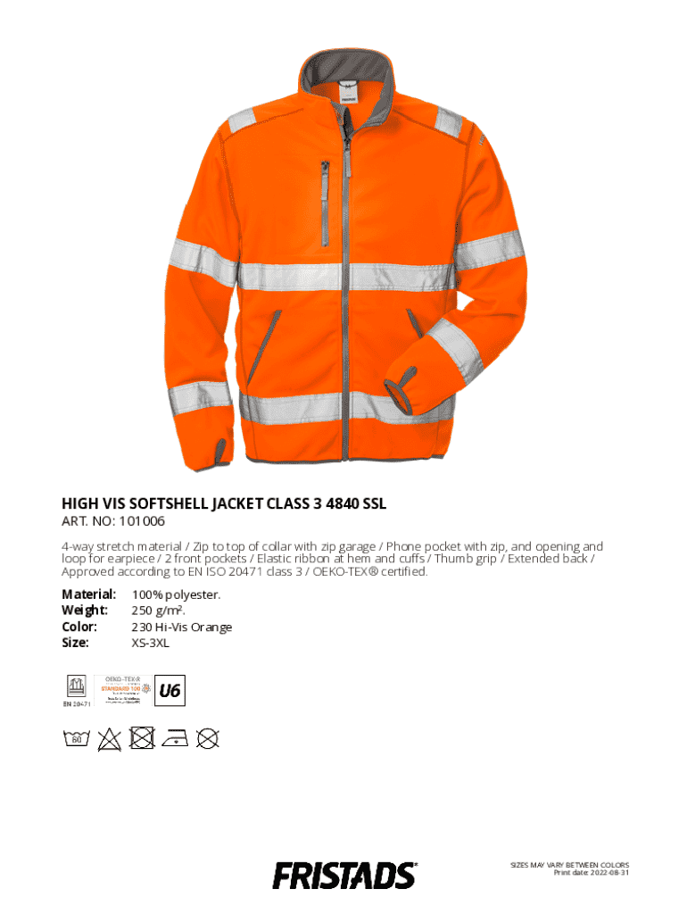 What information must be reported on high vis softshell jacket?