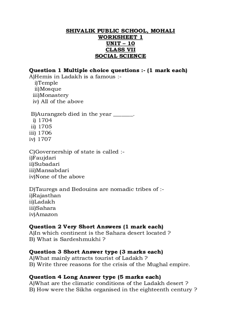 Get the free NCERT Class 7 Social Science Worksheets with Answers ...