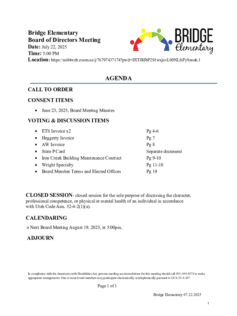 Get the free Bridge Elementary Board of Directors Meeting Minutes and Documents