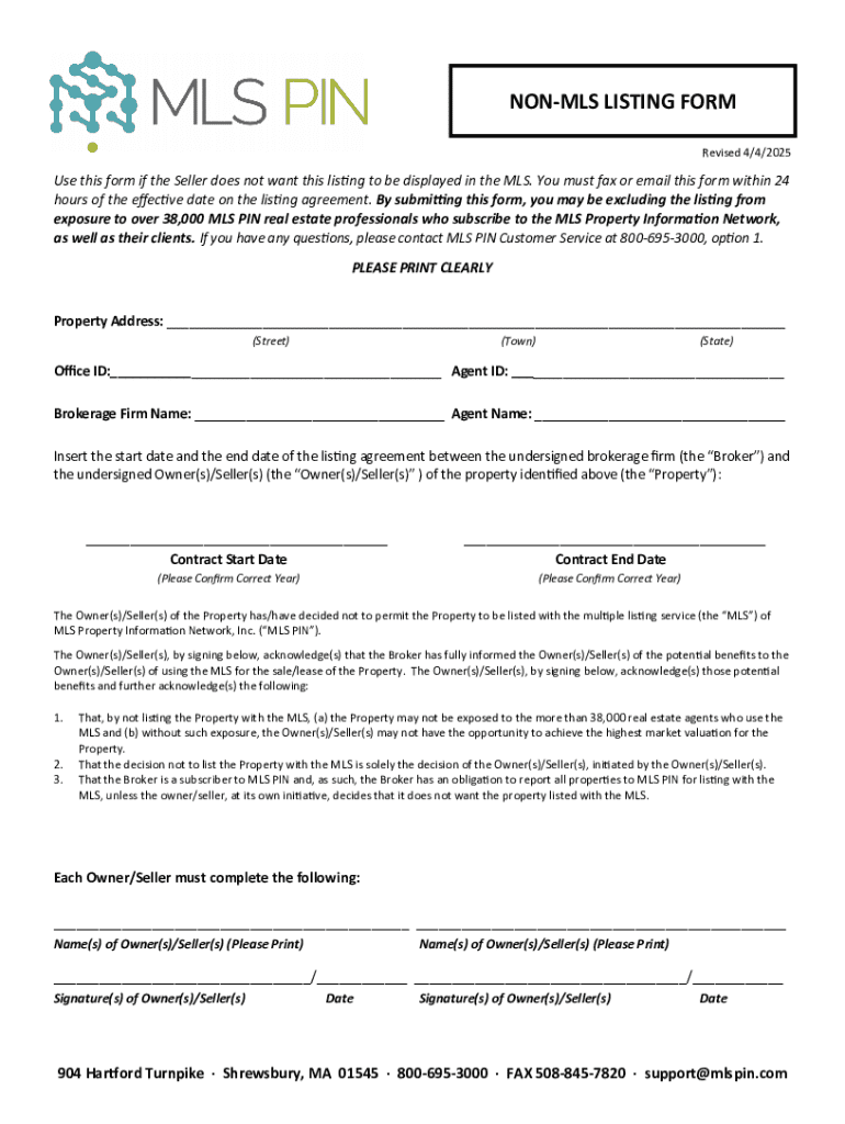 Filling out the non-MLS listing form can initially feel daunting, but following a logical process can simplify it significantly. Start by gathering all necessary information. Have clear records on your property details, including its history, price comparisons, and any unique features that will appeal to buyers. Accurate data collection is vital, as inaccuracy can lead to confusion or mistrust in potential buyers.