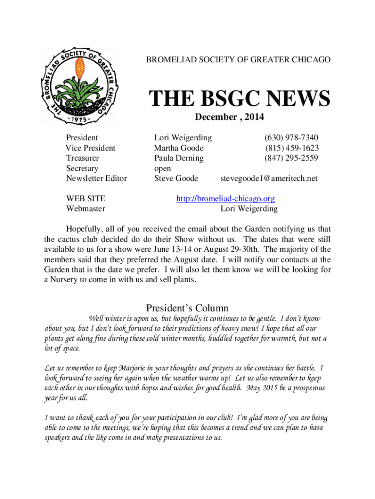Get the free Bromeliad Society of Greater Chicago Membership Application