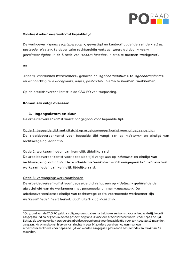 Voorbeeld arbeidsovereenkomst bepaalde tijd form: Een uitgebreide gids