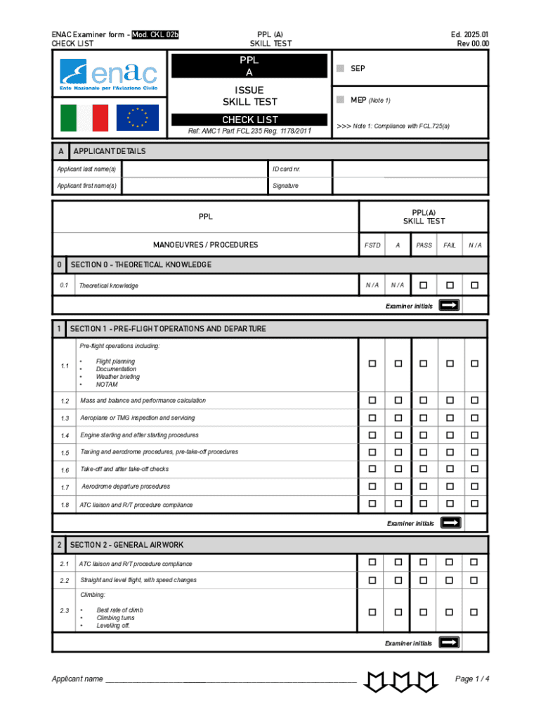 The ENAC Examiner Form serves as a vital instrument in the assessment and evaluation protocols established by the European Union Aviation Safety Agency. Its primary purpose is to guide evaluators through a standardized process that ensures all aspects of compliance and regulatory requirements are thoroughly analyzed.