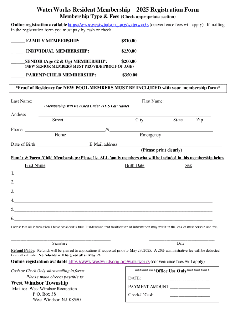 Get the free Waterworks Resident Membership – 2025 Registration Form