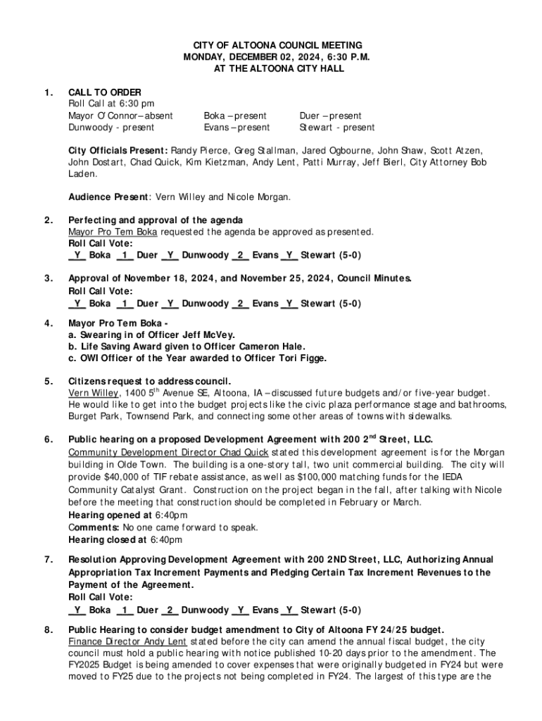 Get the free City of Altoona Council Meeting Minutes