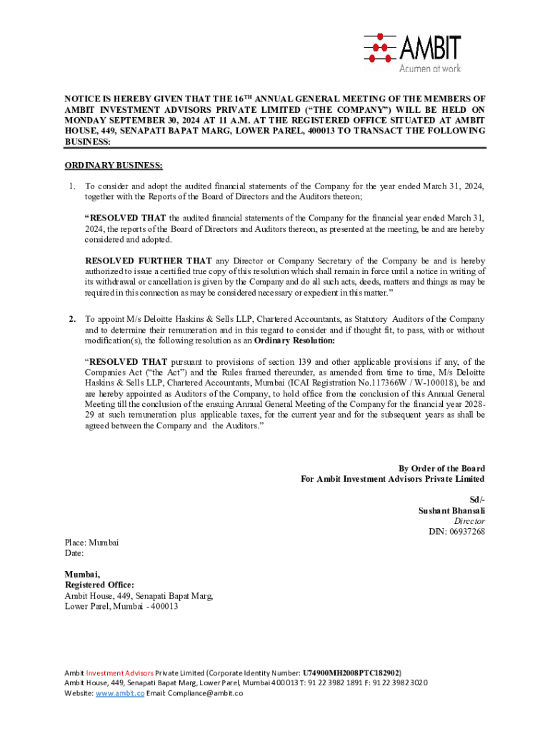 Get the free Ambit Finvest Private Limited This Shelf Placement ...