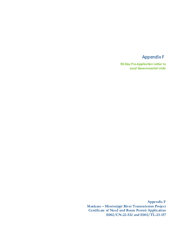 Get the free Appendix F 90-day Pre-application Letter